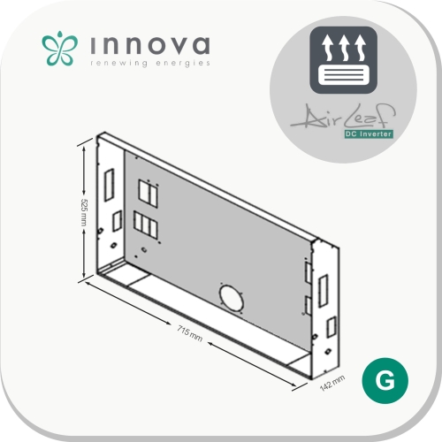 Deze accessoire is gemaakt van gegalvaniseerd plaatstaal en is ontworpen om in de wand gebruikt te worden als behuizing voor de fancoil unit. De behuizing is uitgerust met vooraf aangebrachte uitsparingen voor hydraulische buizen en elektriciteitskabels. Deze behuizing is bevestigt aan de inbouw unit zoals hieronder beschreven.