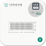 Het wordt gebruikt voor alle ingebouwde fancoils waarbij de luchtstroom naar de kamer wordt geleid door een muur of een verticale verhoging van het verlaagde plafond ( bijv. Hotelkamer). De afmetingen en de gaten op het frame passen perfect op het (C) luchtstroomkanaal en de (E) 90° lucht uitlaatbocht