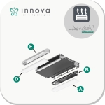 Het wordt gebruikt voor alle ingebouwde fancoils waarbij de luchtstroom naar de kamer wordt geleid door een muur of een verticale verhoging van het verlaagde plafond ( bijv. Hotelkamer). De afmetingen en de gaten op het frame passen perfect op het (C) luchtstroomkanaal en de (E) 90° lucht uitlaatbocht